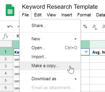 How to conduct keyword research using our free keyword research template via Google Sheets