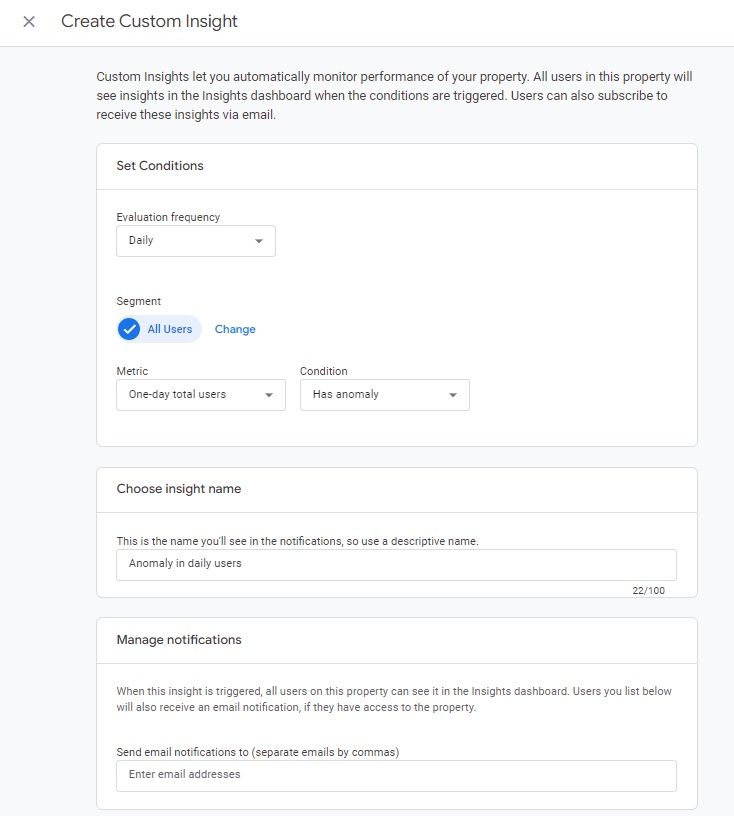 You can then schedule for alerts to be emailed to you and your team when the insight rules are met.