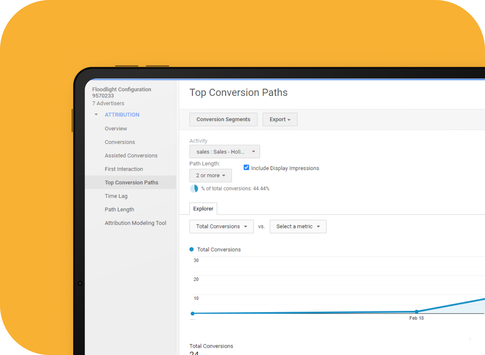 Con los informes flexibles de Campaign Manager 360, puedes gestionar toda la actividad y los datos de tus anuncios, así como conocer el rendimiento de tus campañas de un vistazo. Además, puedes crear informes personalizados para ver las métricas más importantes y medir el rendimiento de tu campaña en todos los canales con esta plataforma orientada a la demanda. Supervisa la eficacia de las campañas con flujos de trabajo automatizados e incluso puedes integrarlas con otras plataformas de marketing de Google, como Display y Video 360 y Search Ads 360.